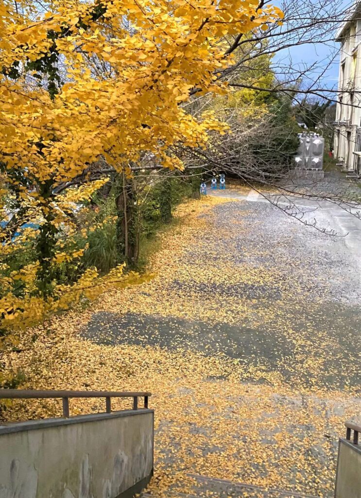あとは銀杏です。秋ごとに体育館側をまっ黄色に染めました。