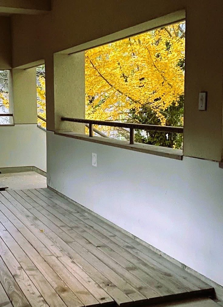 教室棟から体育館への階段を降りると、額縁の絵のような黄色が飛び込んできます。体育の授業や部活の前の特別な感じが戻ってくる、なんて方もいませんか。