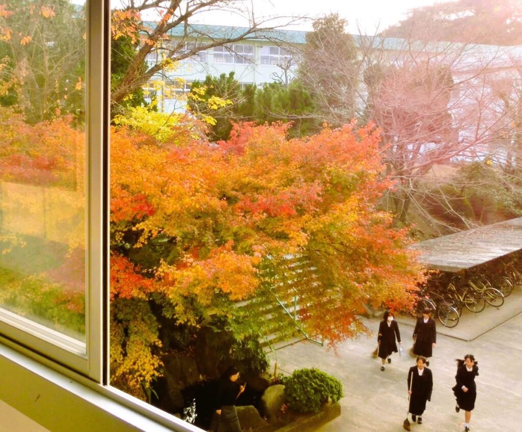 清田校舎の秋で僕が最も気に入ってたのは、文系棟の端っこ、当時の9組10組の廊下側に面したカエデの紅葉です。教室にいても、レトロな木枠の窓(もうないでしょう)の上の方から紅く黄色い光がさします。