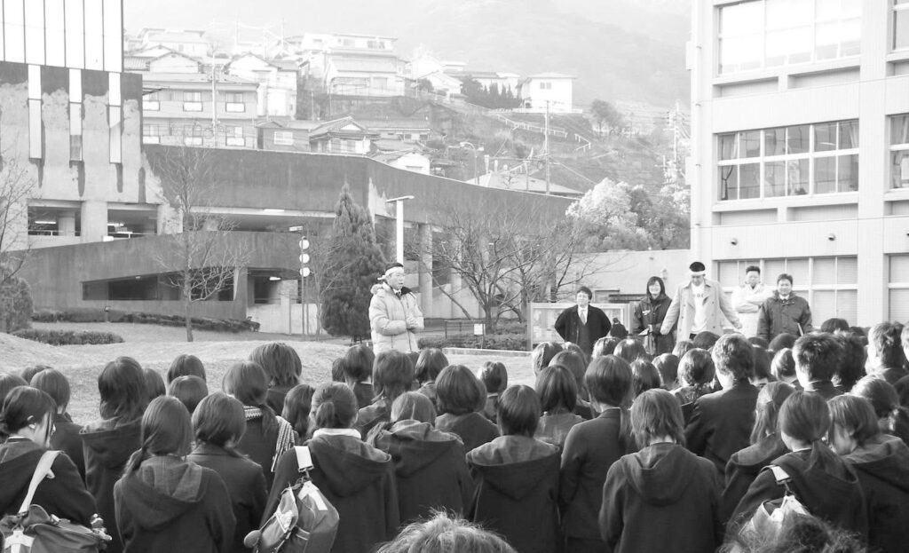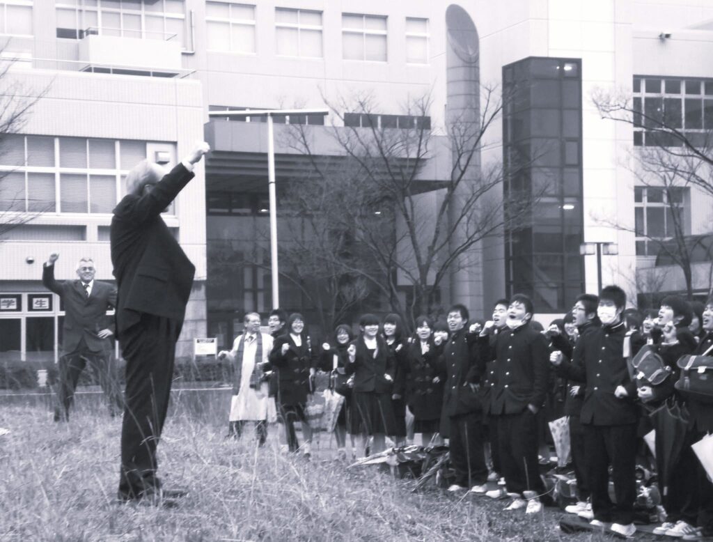 写真にはセンター試験時代の朝の様子が残されています。試験会場は九工大、北九大、九国大、北予備などなど。雪の舞う日も何度かありました。当時の八高はこの朝に「八高ファイト」をやってました。「荒野をめざす」青年たちへのエールでした。