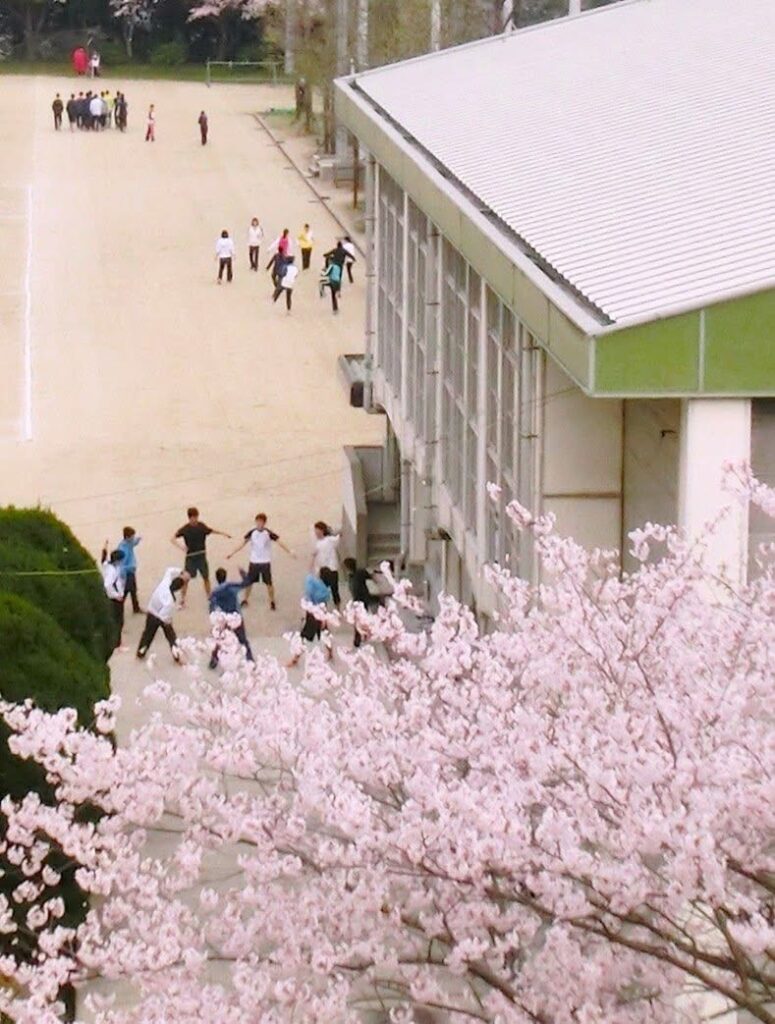 桜のころは春休みのただなか。八高では静かに時間が流れます。教室棟に生徒の姿は少なく、体育館、グラウンドに部活生が元気です。